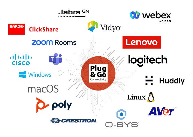 Compatible with all USB cameras, video bars and pro-AV audio devices