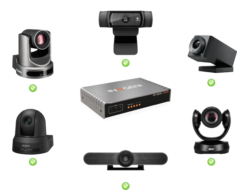 This pro AV camera switcher is fully compatible with all USB and HDMI cameras, including professional-caliber equipment, such as Vaddio, Huddly, HuddleCamHD, AVer, Jabra, Logitech, Marshall cameras, and web cameras.