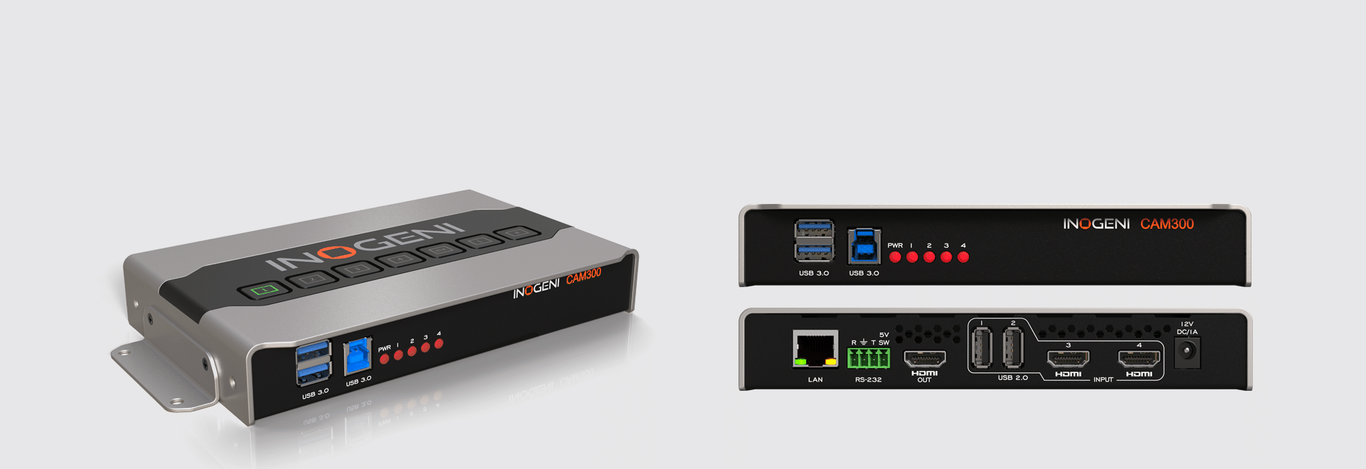 1x USB camera (1080p or higher) connected to the CAM300 HDMI input via the INOGENI U-CAM converter (4K USB to HDMI converter)