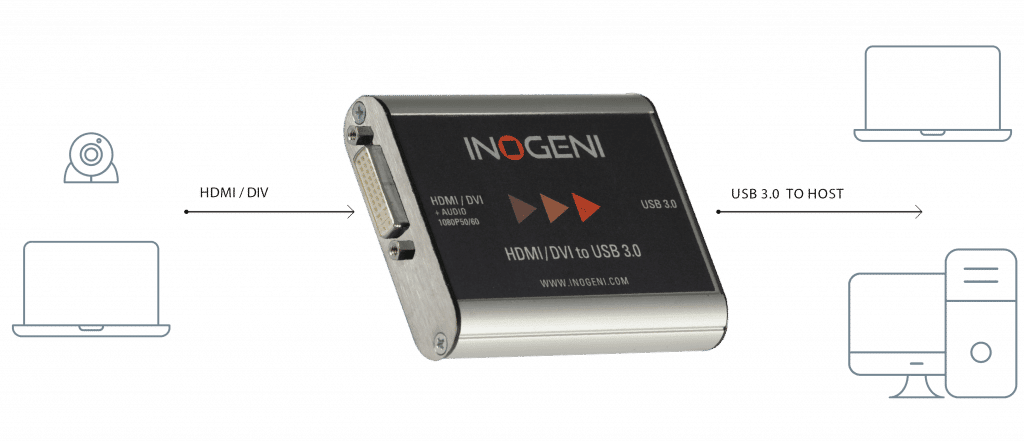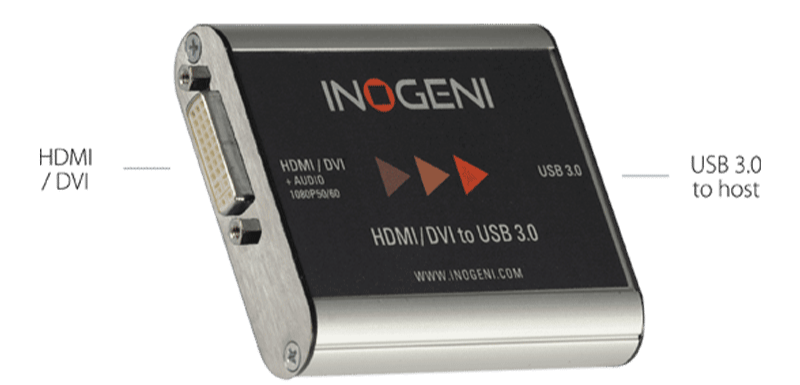 INOGENI’s DVIUSB video captures card and audio from your camera’s HDMI or DVID-D output simple BYOD/BYOM setups. It is compact and powered directly from a USB 3.0 port, making it a practical and easy-to-use USB 3.0 capture solution.