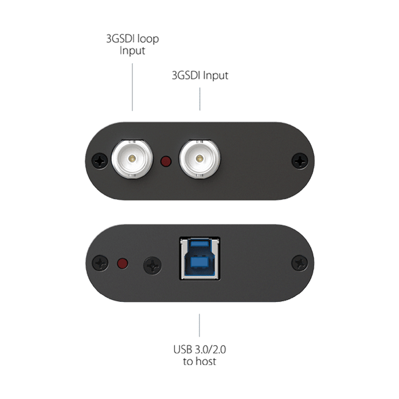 Converts SDI (video and audio) to USB 3.0 without compression. Active loop output connector.