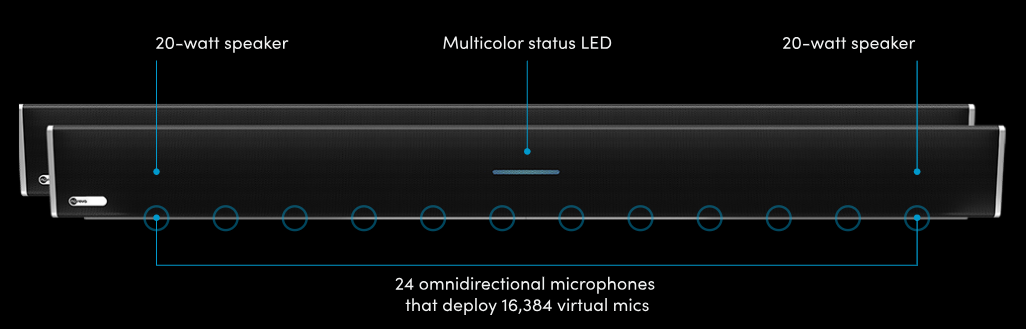 The HDL410’s unified coverage map enables the physical mics from two microphone and speaker bars to be processed together instead of separately, creating a giant microphone array that spans the entire room. Each virtual microphone is targeted with greater precision, resulting in clearer, more consistent audio.