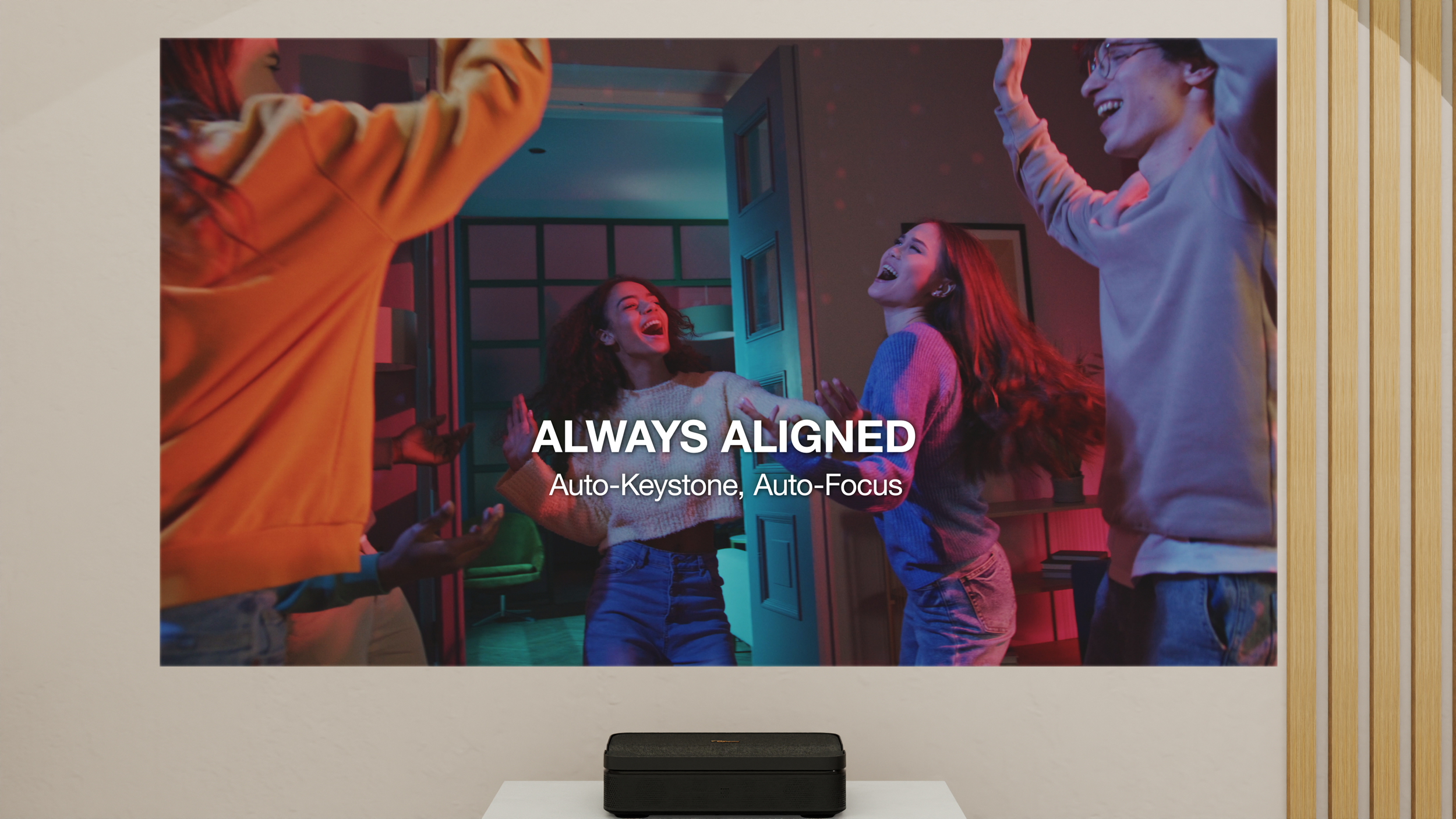 With an ultra-short throw lens and innovative Time-of-Flight (ToF) technology for auto keystone and focus correction, you can instantly create a perfectly projected 100" image less than 25cm away from your desired projection surface - ideal for quick and casual viewing.