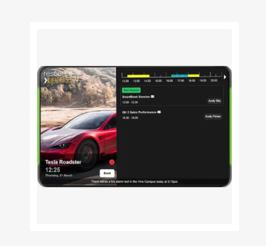 Instant wayfinding and resource status indication can be presented in a central lobby or foyer using ResourceXpress Qsign displays. Greet your visitors and let them know where and when their meetings are when they enter your office.
