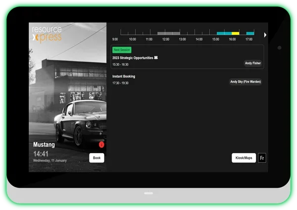 There are many imitations, but Aura Meeting Room Screens are unique to ResourceXpress. Our range of available options perfectly complement ResourceXpress On Premise or SaaS meeting room booking systems.