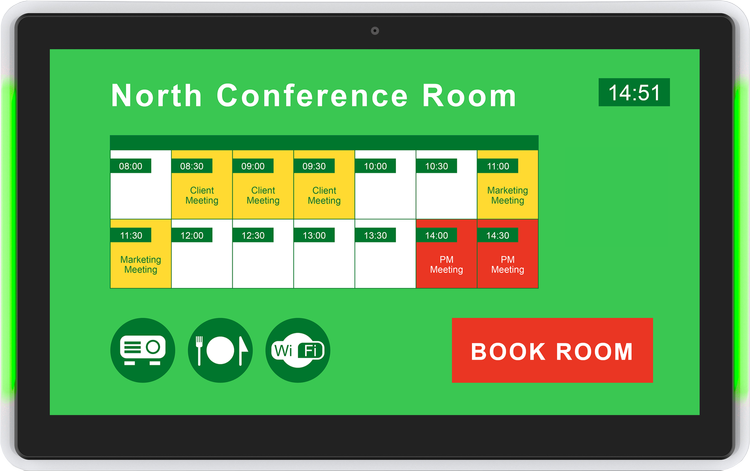 15″ Widescreen All-In-One Interactive Meeting Room Door Sign with Embedded NFC & RFID