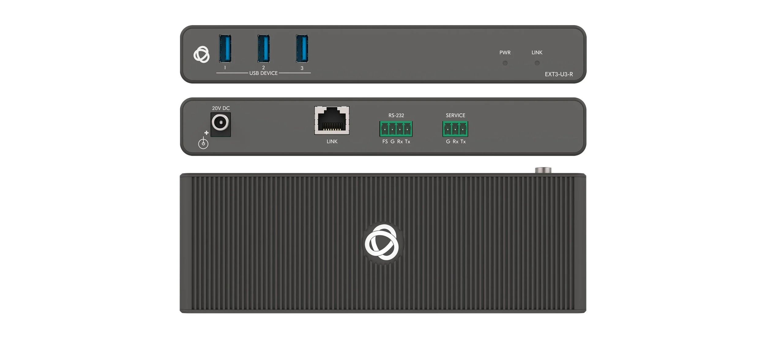 Boost data transfer with the Kramer EXT3-U3-T/R, a USB 3.2 Gen 1 extender reaching 100m over CAT, featuring a 3-port hub, RS-232/FSYNC passthrough, and PoC+ powering. It supports legacy USB and high-speed devices-perfect for extended AV and control environments.
