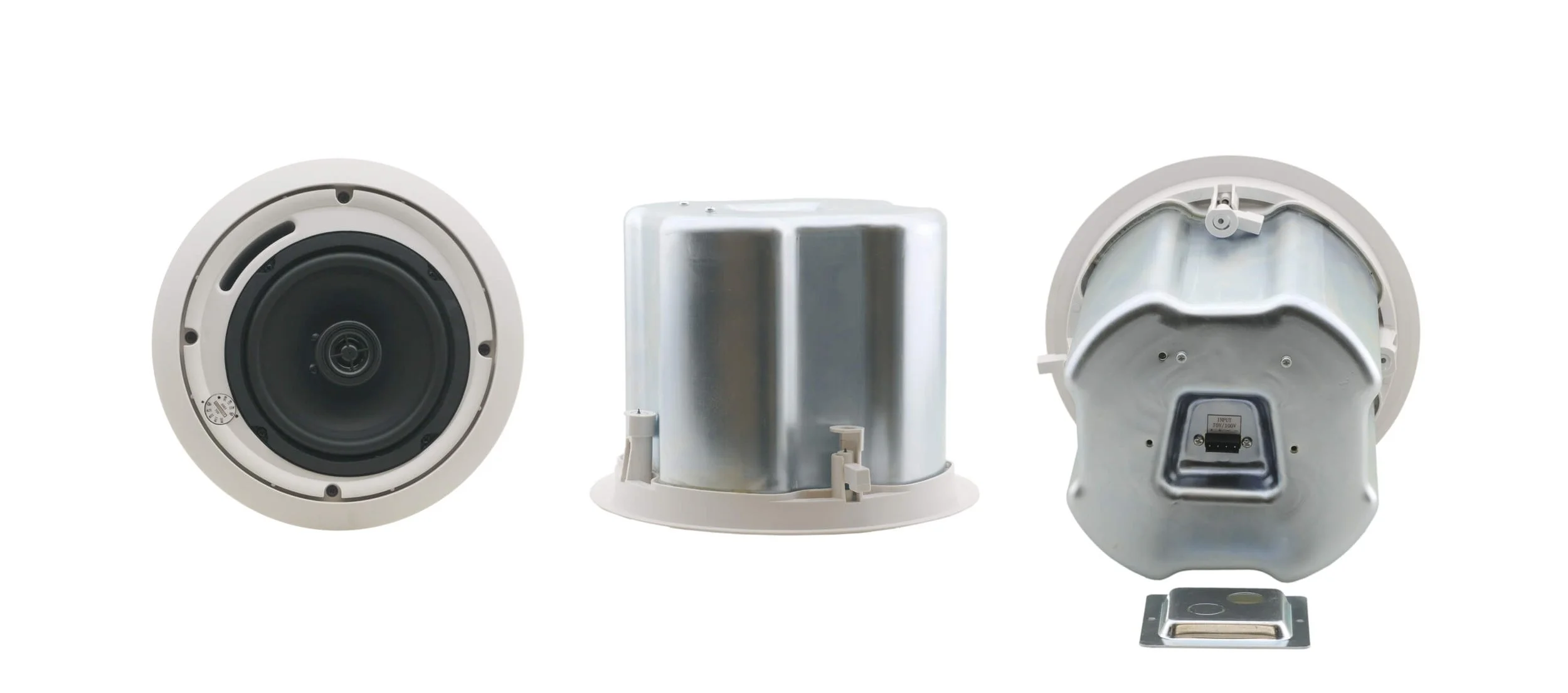 Deliver clear sound with the Kramer Galil 6-C, pair of 6.5" 2-way coaxial speakers handling 30W RMS (80W program) at 8Ω or 70/100V, with polypropylene woofer and Mylar tweeter for even coverage. Closed-back design suits background/foreground audio in offices and venues.