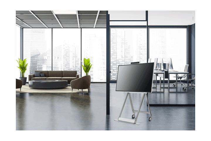 The One:Quick Flex can be used anywhere indoors where it can be moved by wheels. From a private office to public lounge, it plays various roles according to each need such as video conferencing, design demo, collaboration, etc.