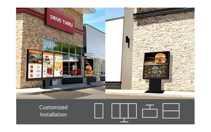 The XE4F series is lighter and ready to be customized for various customer needs and settings. From outdoor menu boards to kiosks, the XE4F series is also mountable and optimized for customers, based on the industry purpose and use.