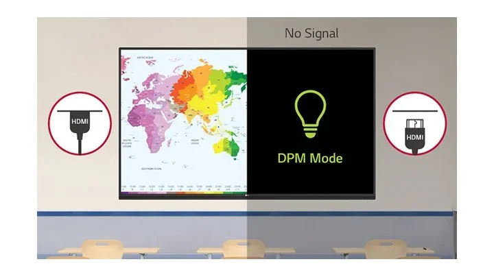 By activating DPM function, the display can be set to be on only when there is an input signal, which enables more efficient power management.